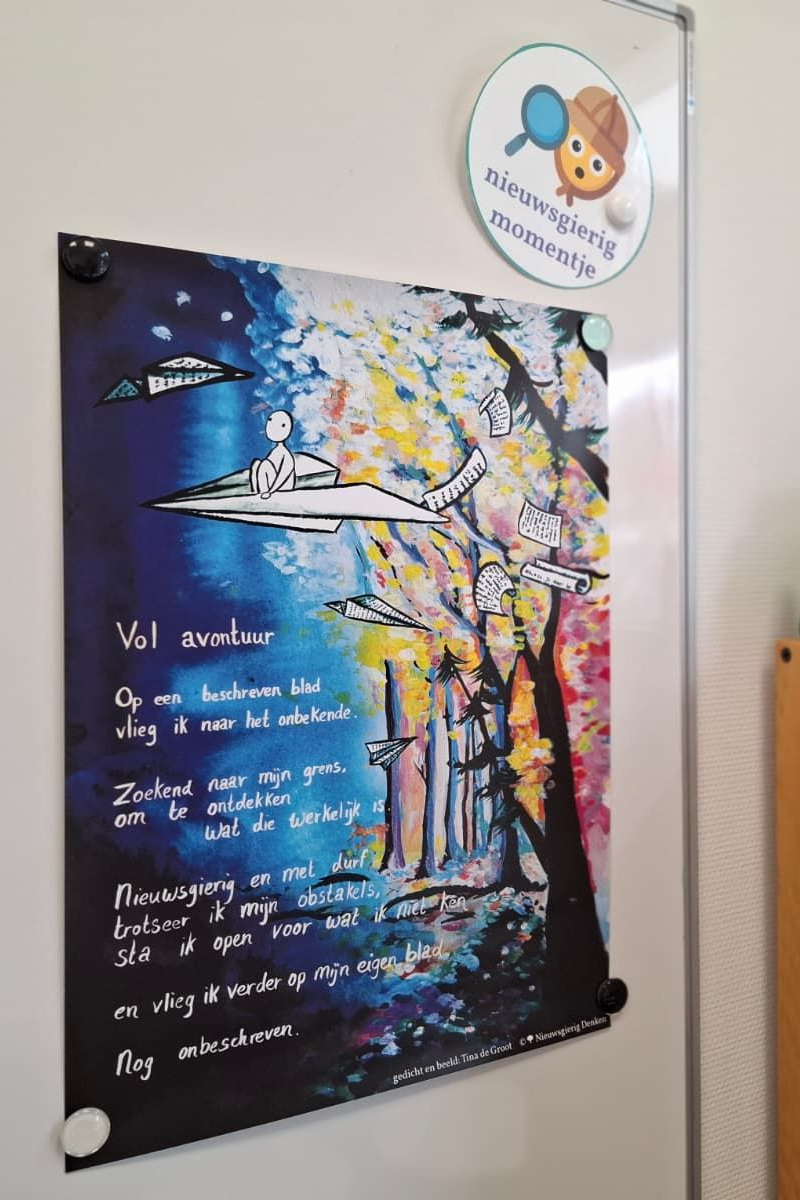 Als onderwijsprofessional heb je dé sleutel in handen om een nieuwsgierige sfeer in de klas te creëren. Daar hoef je vaak helemaal niet veel voor te doen. Vaak kun je door het creëren van korte nieuwsgierige momenten al een prachtig verschil maken. Bijvoorbeeld via een prachtige poster met een inspirerende boodschap die hangt in je klas! Met deze poëzieposter hoop ik kinderen te inspireren om hun eigen nieuwsgierige ik te vinden en te blijven volgen.